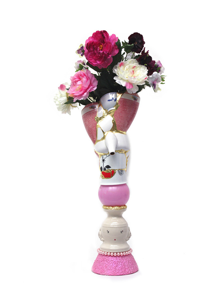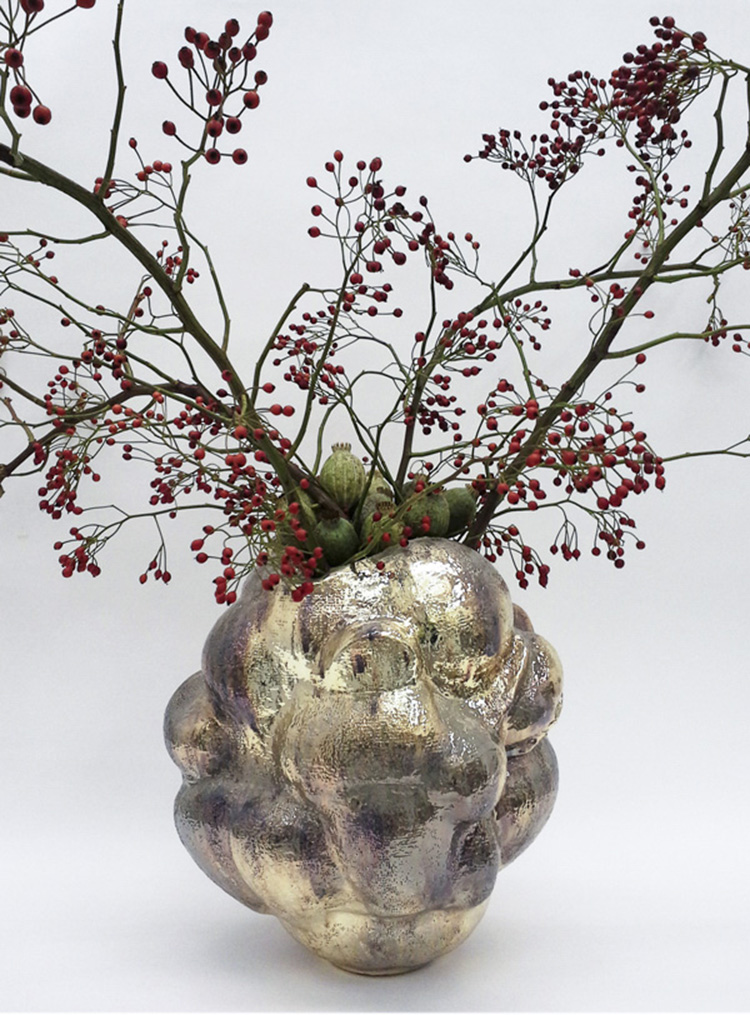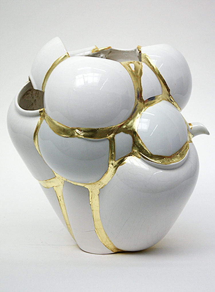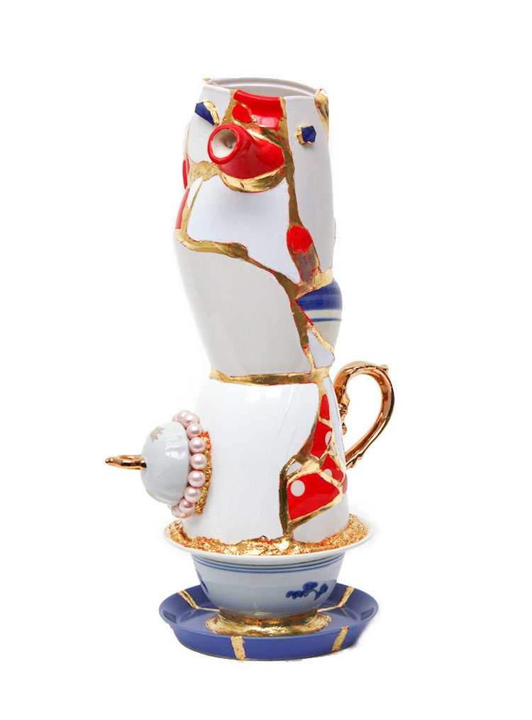 unique edition, wood, krijtinto, pearlescent paint, gold-plated 22,5 krt